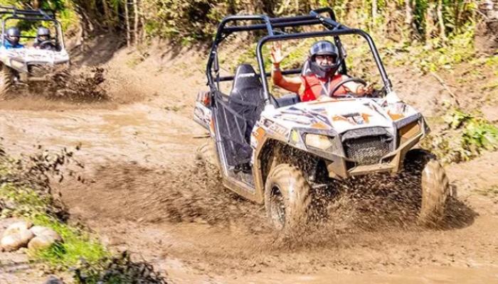 Disfrutaremos de un paseo de 30 minutos manejando a través de pueblos locales y senderos rurales. ¡Prepárate para mojarnos al cruzar un río de agua fresca en nuestros buggies! Continuaremos en una caminata de 40 minutos en la cual disfrutaremos de una vista espectacular. Seguidamente nadaremos en una de las muchas asombrosas cascadas que podremos apreciar. Deslízate o salta hacia la alberca natural de agua dulce que cae desde la misma montaña. Cada cascada y alberca natural tiene su propia identidad y tú mismo podrás experimentarlo. Esta aventura nos llevará a caminar por caminos muy estrechos, saltos desde cascadas, deslizarnos en toboganes naturales y nados en cavernas. Esta es una actividad única en la vida que no querrás perderte.